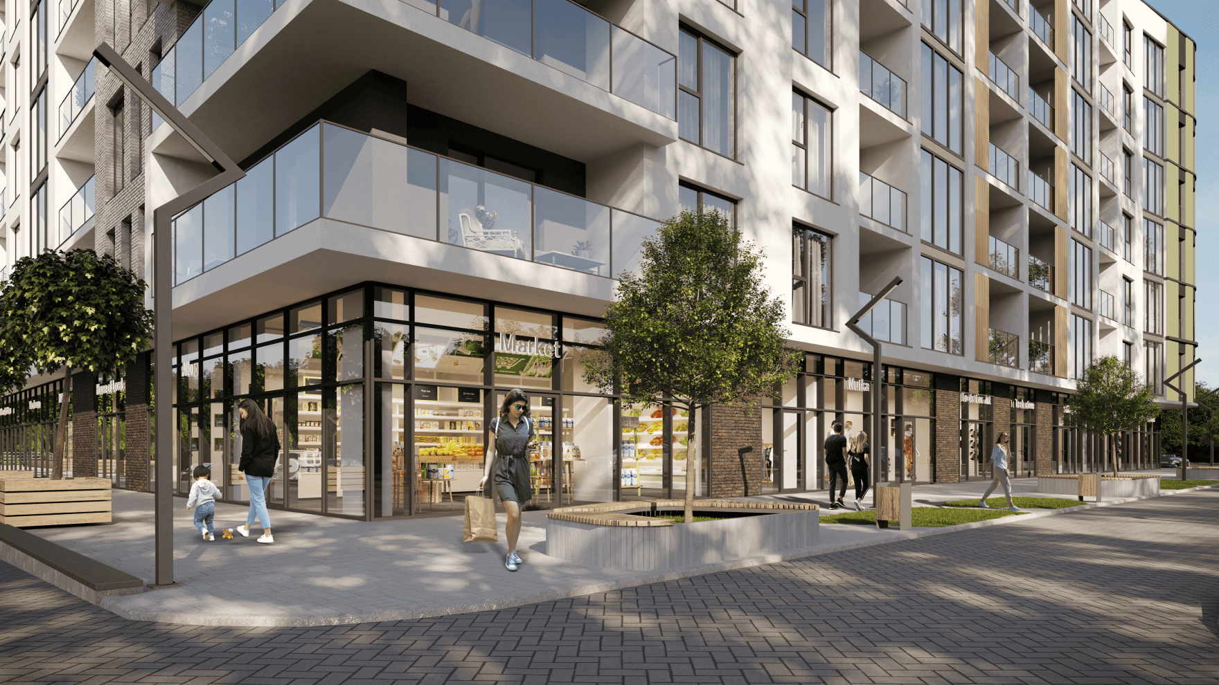 Підземний паркінг, дитячий майданчик, магазини та кафе на першому поверсі, благоустрій та озеленення, закрита територія.