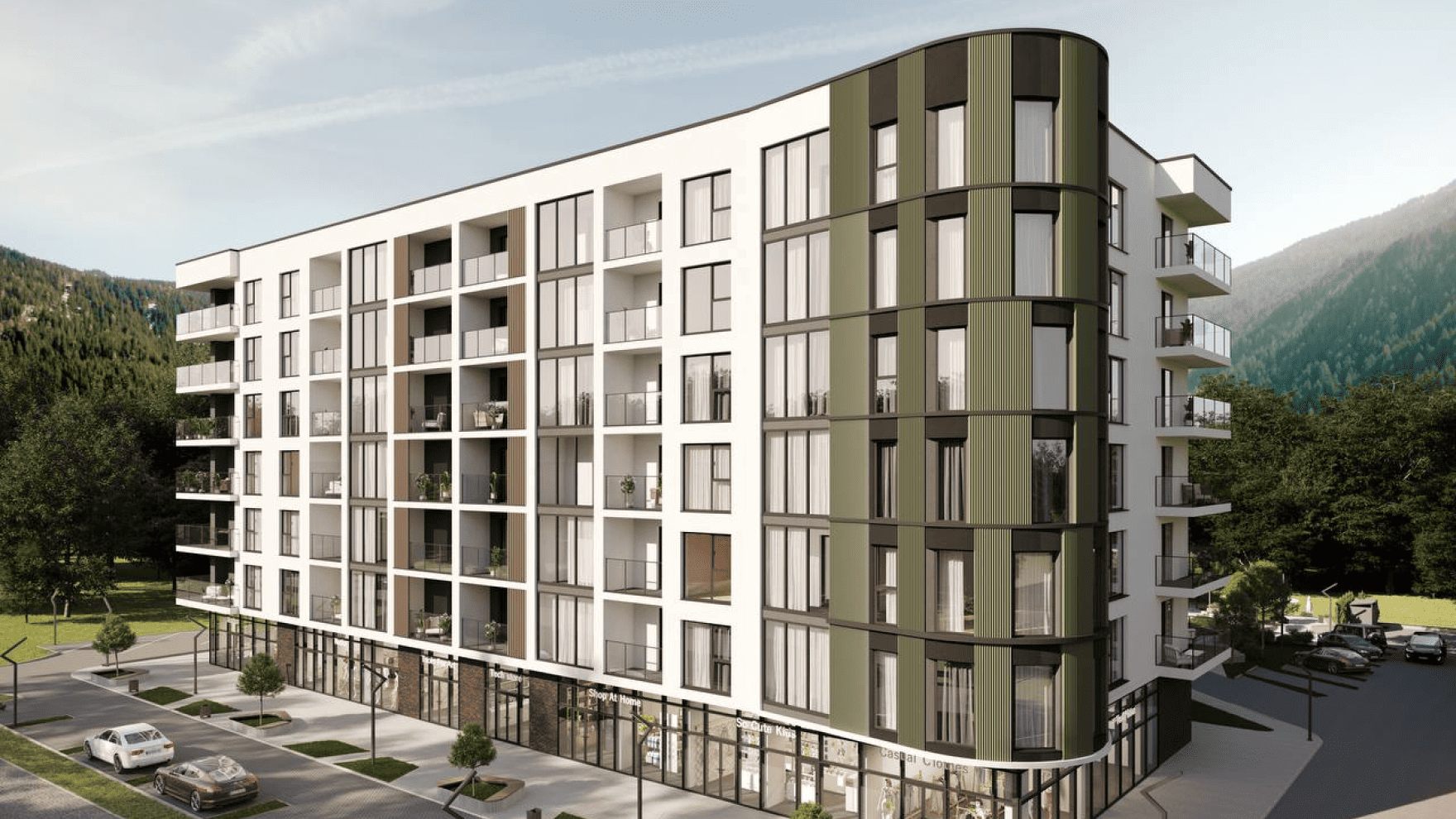 Житловий комплекс розташований у центрі бальнеологічного курорту, за 3 хвилини пішки від найвідомішого санаторію регіону «Квітка полонини», поруч з великим парком та річкою.