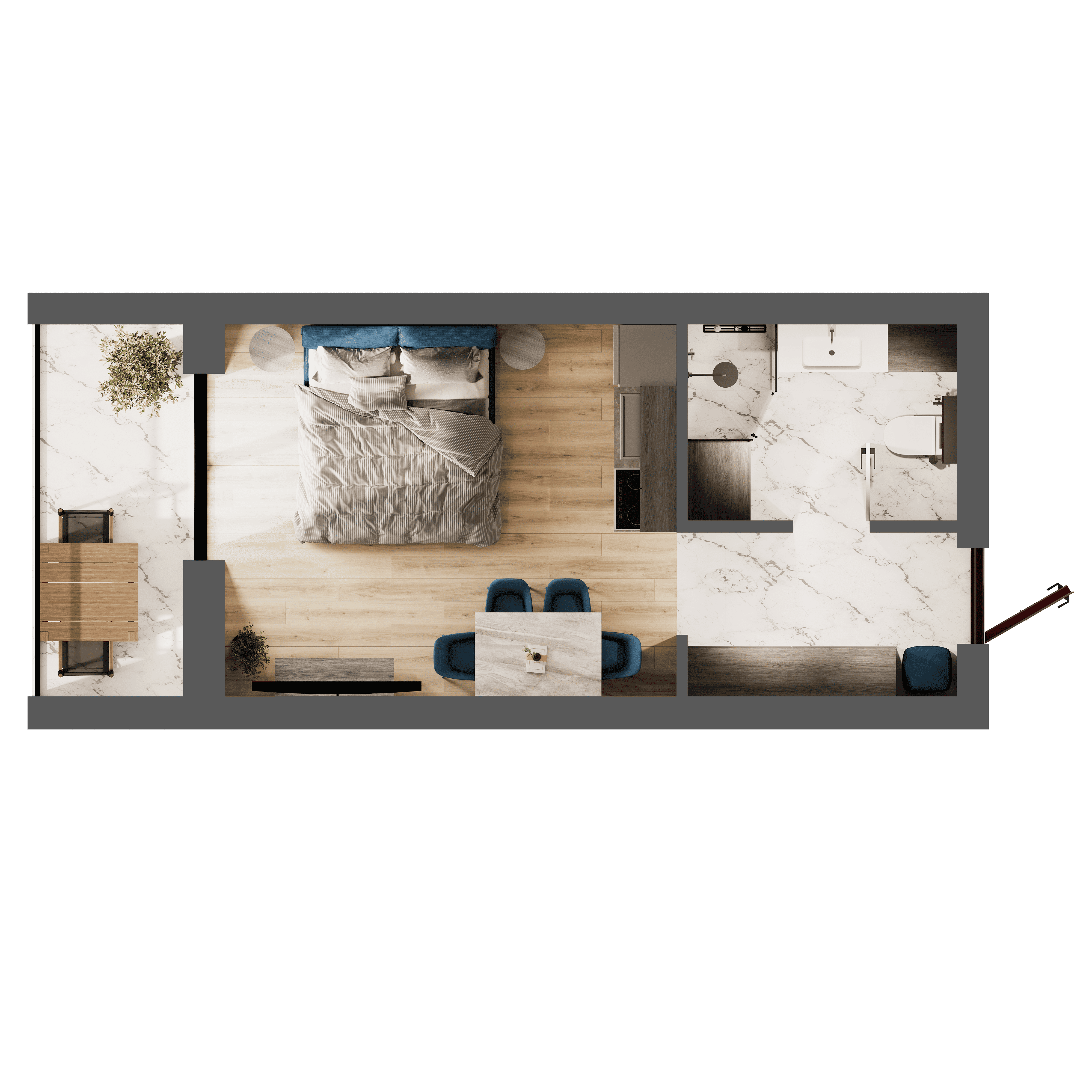 Квартира-студія на 30.02 м² - це компактне рішення для сучасного життя. Чудовий варіант для поціновувачів мінімалізму.