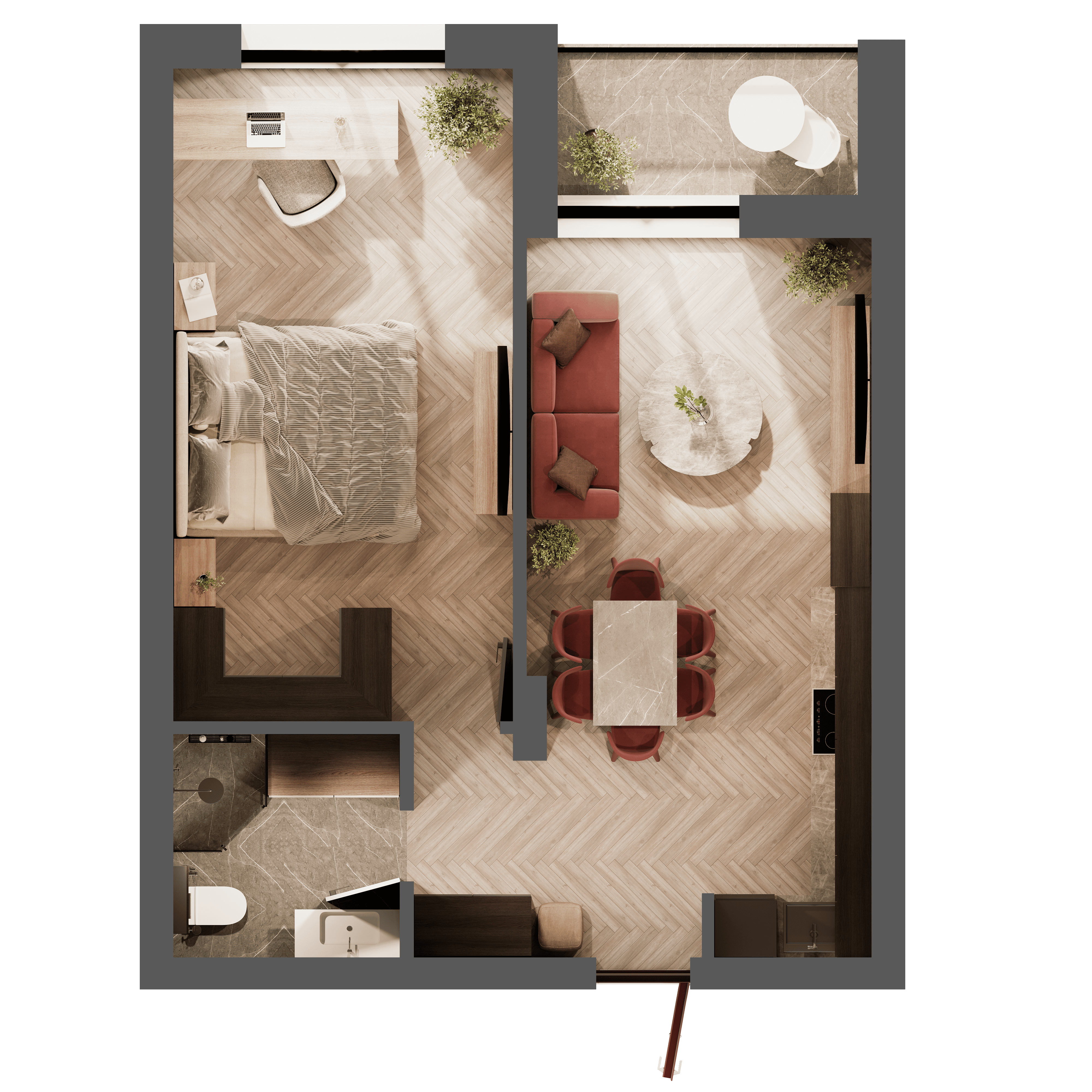 • велика кухня-вітальня із виходом на балкон та додатковою зоною відпочинку.