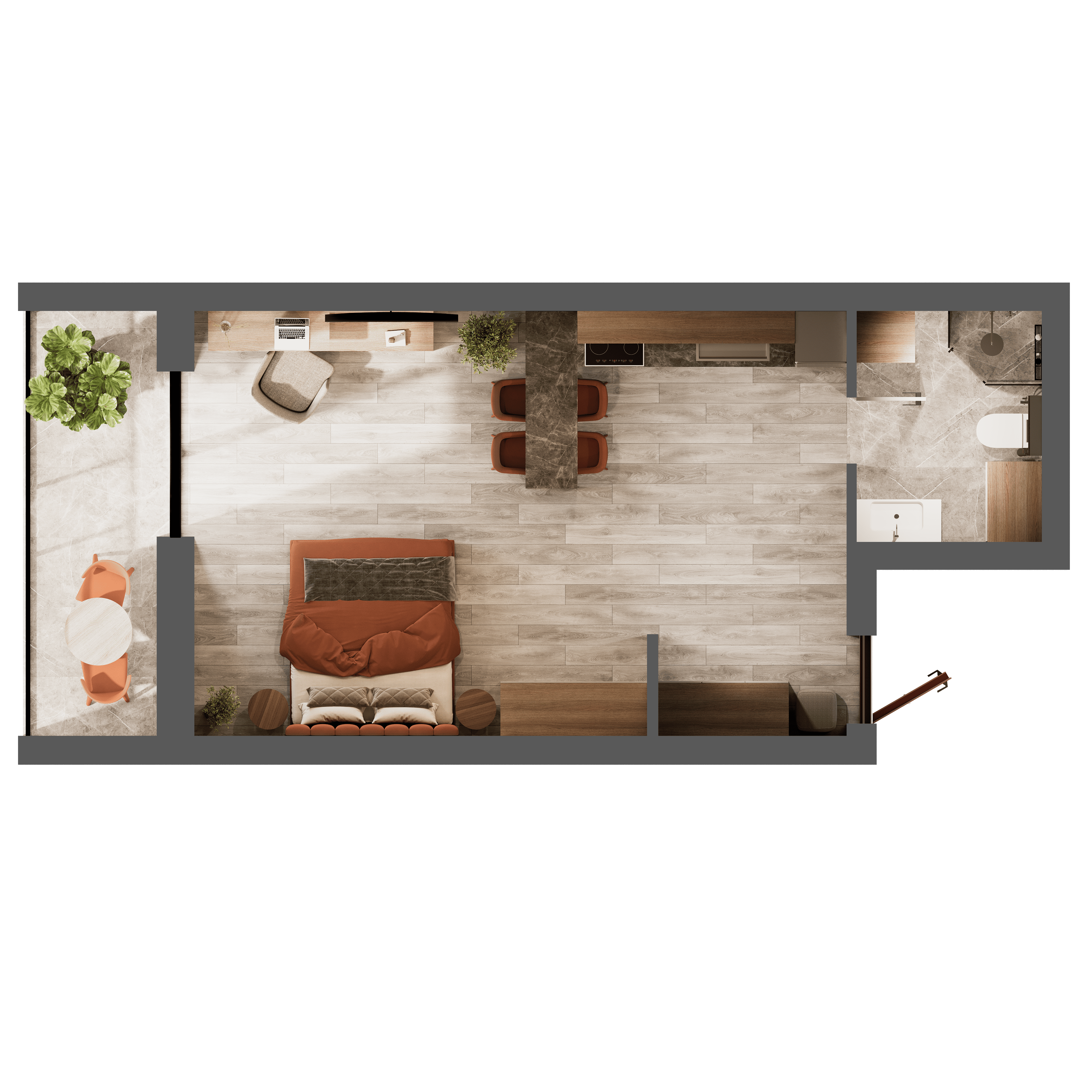 зручний простір для спальні та кухонної зони.