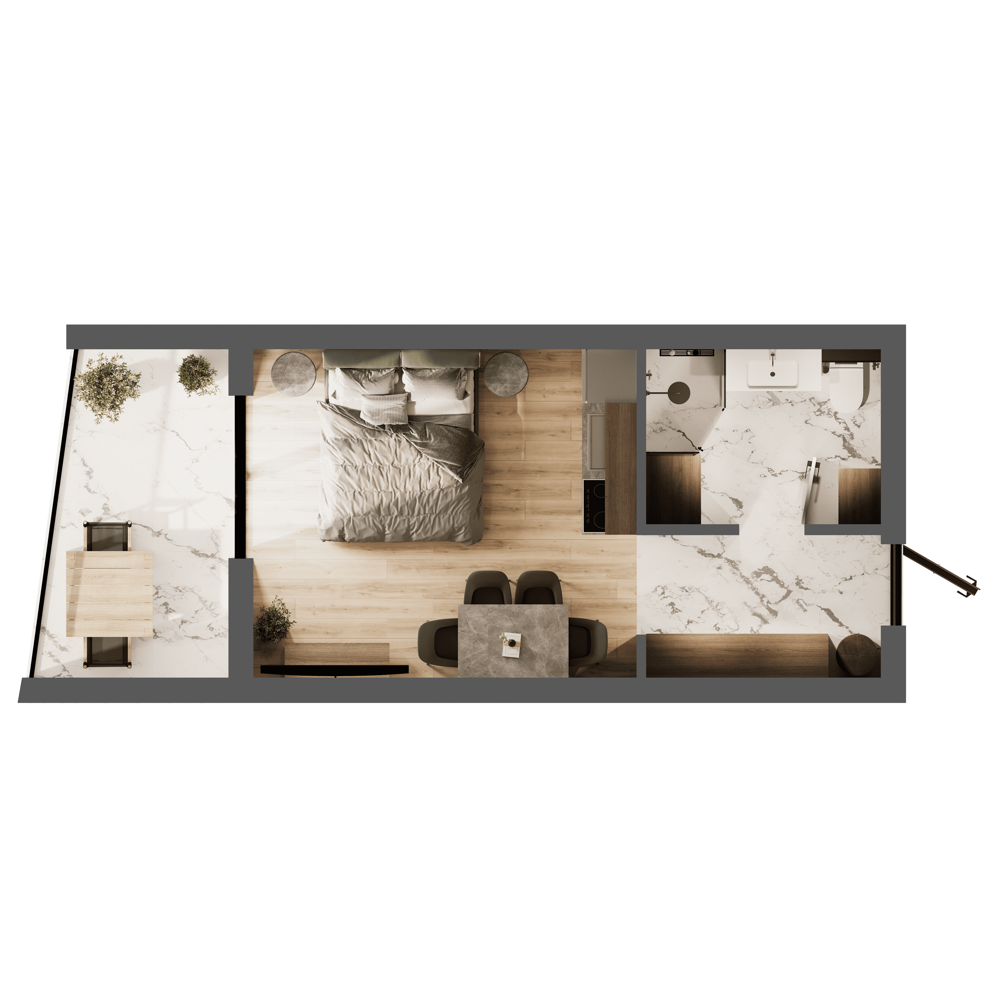Однокімнатна квартира площею 31.2 м² - компактний простір для комфортного життя в сучасному стилі. Чудовий вибір для молодих пар і всіх, хто цінує функціональність простору.